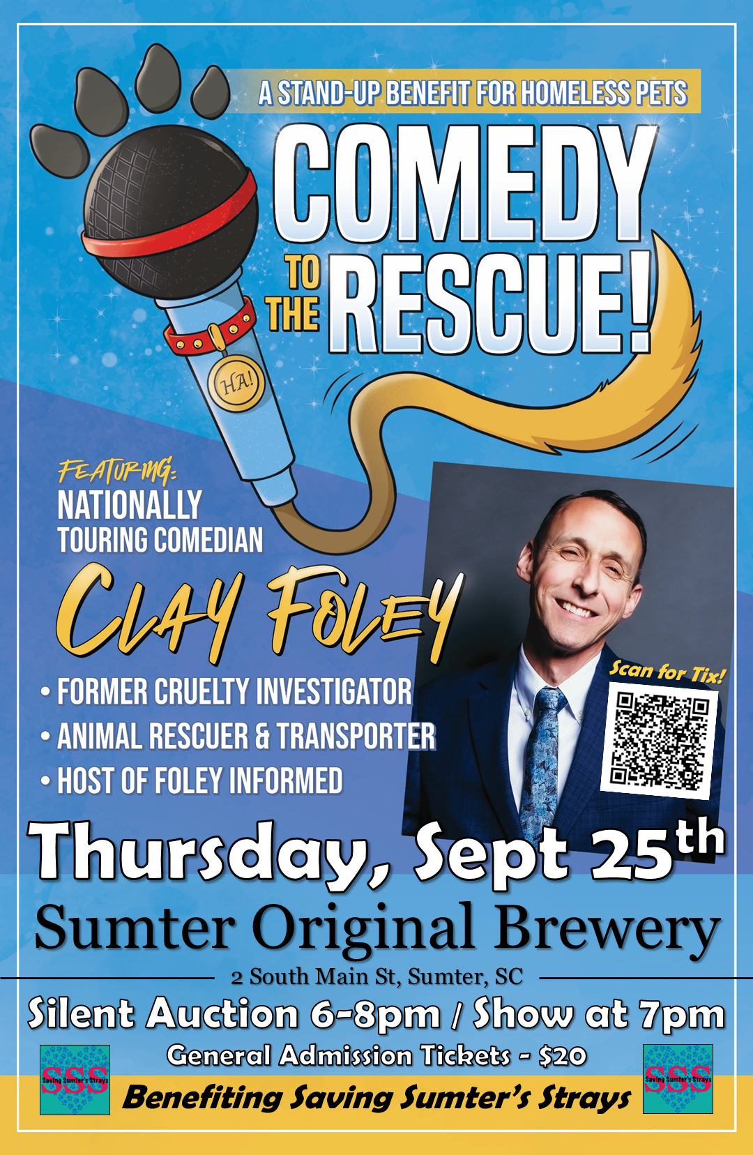 Get ready to be part of something extraordinary at Saving Sumter’s Strays’ Comedy to the Rescue Event, for an unforgettable evening dedicated to giving deserving dogs a second chance.